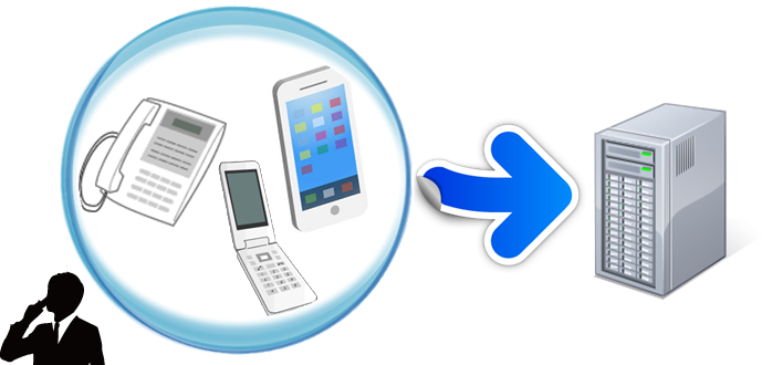 録音対象機器はオフィス電話、スマートフォン、docomo携帯電話など様々な機器に対応しています。